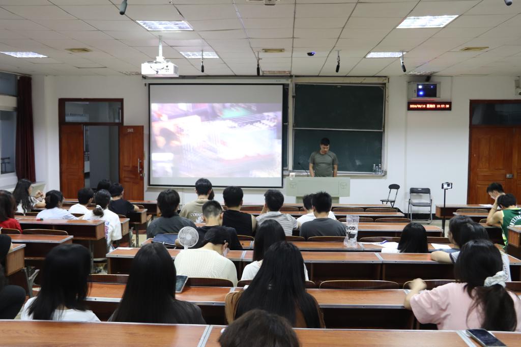 本网讯(记者 谢雨颖/文 黄煜基/图)为加深学生对征兵政策的了解,激发学生的爱国情感与应征入伍的积极性,我院于6月16日在9A411教室举办以“热血青春,应征从戎”为主题的Leading Talk退伍学生分享交流会暨征兵宣讲会。本次交流宣讲会由我院三名退伍学生担任主讲人,团总支书记谢学婧担任主持人,八十余名适龄兵源本科生参与活动。