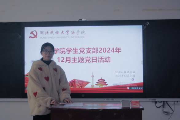12月24日,法学院学生党支部在9B306教室举行12月主题党日活动。