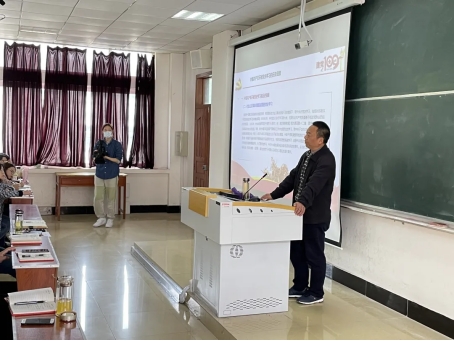 本网讯 4月15日下午,bat365官网党史学习教育宣讲团成员、马克思主义学院党总支书记罗成富教授在德智楼9B401教室进行党史学习教育宣讲,德智楼内的马克思主义学院、法学院、体育学院、教育学院等4个学院全体党员聆听了讲座。这标志着“四合院”联合开展的以“学党史 促专业 谋发展 育人才”为主题的党史学习教育活动正式启动。