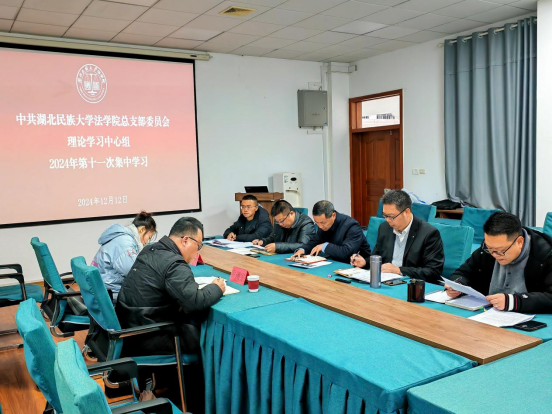 12月12日,法学院党总支理论学习中心组在法学院会议室开展2024年第十一次集体学习,学院党总支书记张明波主持学习,党委宣传部常务副部长罗翔宇等到场指导。