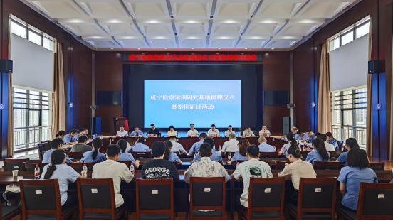 7月9日上午,李文革副院长一行在赤壁市人民检察院参加由咸宁市法学会、咸宁市人民检察院、bat365在线中国登录入口法学院、咸宁市法学会检察学研究会共同主办的咸宁检察案例研究基地揭牌仪式暨案例研讨活动。黄继坤副教授在会上做“刑事案例研习的重要性、方法和实践”的主题演讲;蔡世鄂副院长就办案工作人员围绕“轻罪治理+高质效办案”的案例分享做精彩点评;李文革副院长做总结发言时指出,共建检察案例研究基地是丰富和落实检校合作的重要方式,于提高法科生培养质量和实践创新能力具有重要意义。
