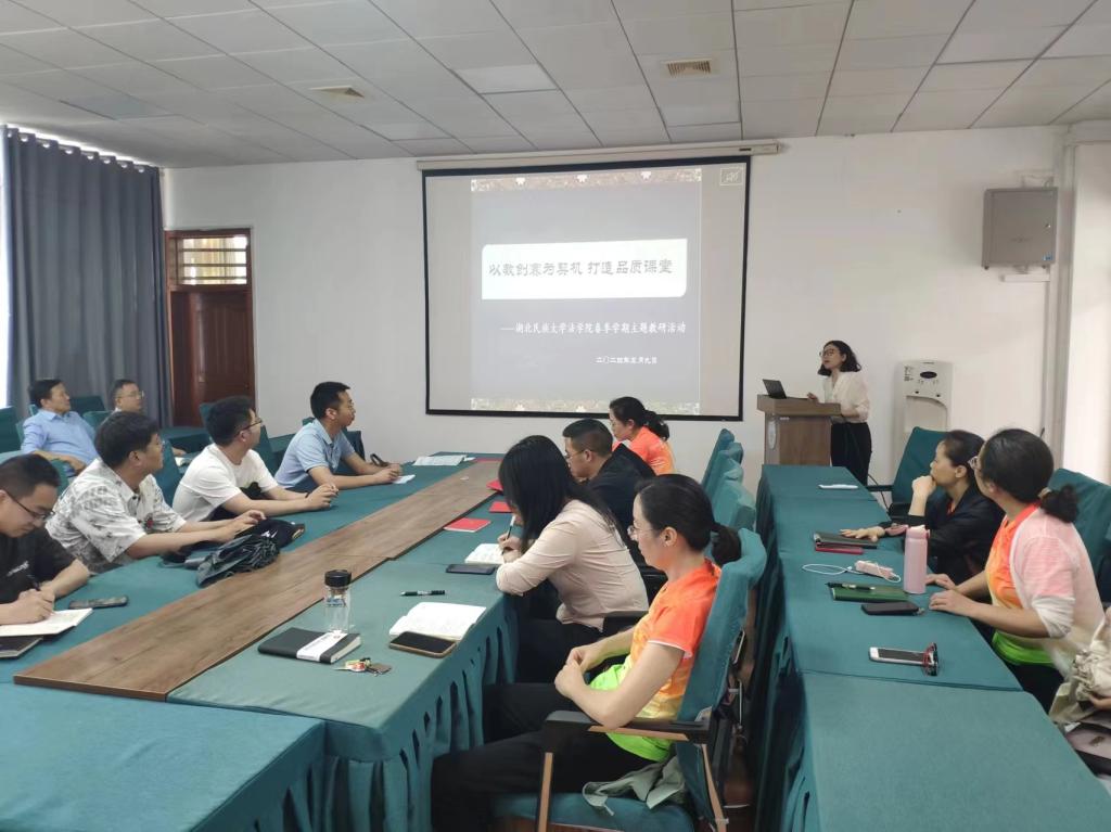 2024年5月9日下午,我院在德智楼9B314举行题为“以教创赛为契机 打造品质课堂”的主题教研活动,法学系全体教师参加了本次活动。会议由法学系主任、法学专业负责人冉艳辉教授主持。