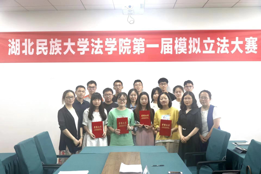 与参加学校第一届模拟立法大赛的同学合影