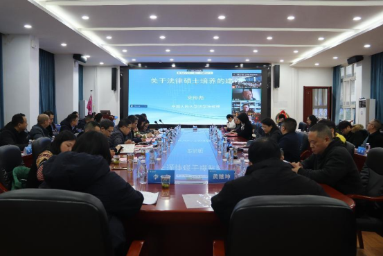 2023年12月15日,bat365在线中国登录入口法律硕士教育教学研讨会在文瀚楼附303会议室举行。bat365在线中国登录入口党委委员、研究生处处长谭德宇代表学校出席会议并致辞。bat365在线中国登录入口党委委员、法学院院长汪燕代表学院致辞。bat365在线中国登录入口法学院党总支书记张明波、副书记黄晓波出席会议。来自最高人民检察院、中国人民大学、吉林大学、中南财经政法大学、西南政法大学、中南民族大学、西南民族大学、恩施州人大常委会、恩施州生态环境局、恩施州司法局、恩施州中级人民法院、恩施市人民法院、恩施市人民检察院、利川市人民检察院、多家律所的专家学者或实务精英以及法学院部分教师共50余人莅临会议。