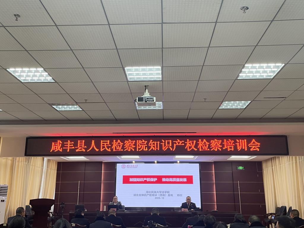 2023年12月13日,湖北省知识产权培训(恩施)基地负责人杨信副教授应邀为咸丰县人民检察院开展知识产权专题培训,咸丰县人民检察院主要负责人及工作人员参与培训。