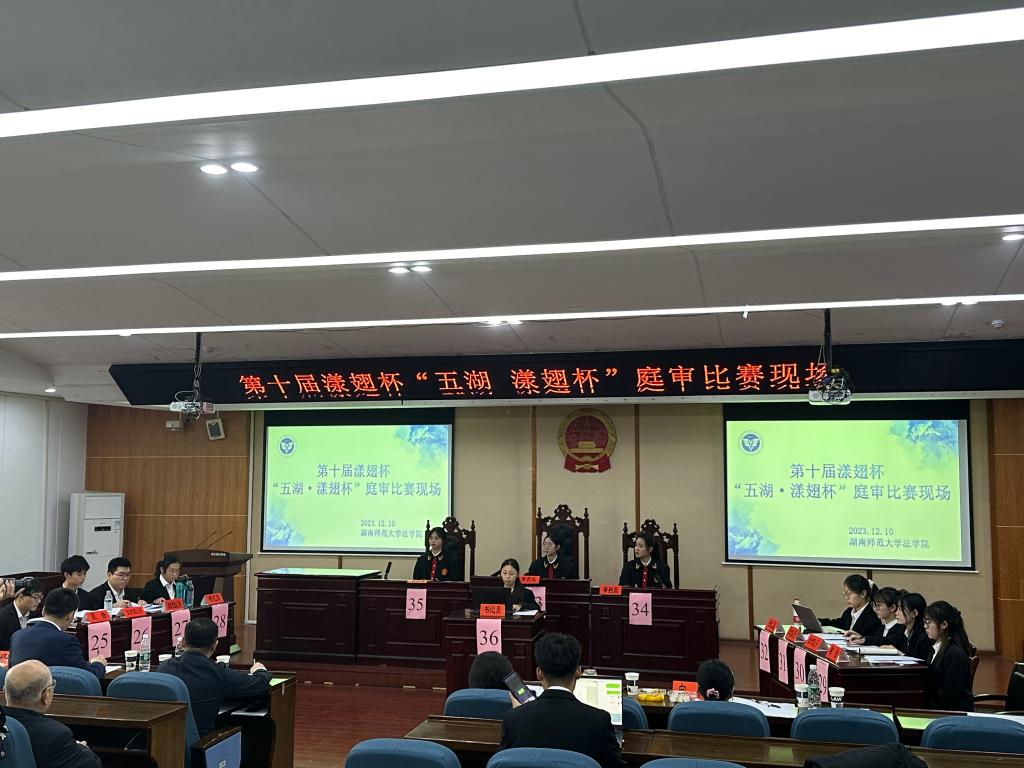 2023年12月8日—10日,由湖南省法学会程序法学研究会和湖南师范大学法学院主办的第十届“五湖·漾翅杯”法律实践能力大赛在湖南师范大学举行。bat365官网法学院杨信、尹建元、李清林、李建忠四位老师,带领王欣、崔钰婕、李佳欣、刘怡均、邹金辉五位同学代表bat365官网参加了此次比赛。经过两天紧锣密鼓的赛事,我院代表队在十二支参赛队伍中脱颖而出,最终获得漾翅杯“敢斗”三等奖。