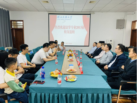 悠悠学子意、浓浓母校情。10月4日,法学院于9B314会议室举行了2013届校友毕业10周年座谈会,学校党委委员、法学院院长汪燕,法学院党总支书记张明波,学校招生就业与校友联络处副处长向贤海,法学院副院长李文革、2013届班主任冉传慧,原法学院教师、湖北拙卓律师事务所主任刘克安,法学院教师代表及2013届校友代表参加此次座谈会。
