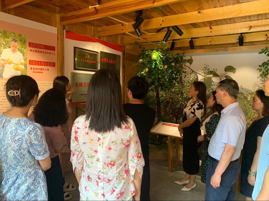 法学院院长汪燕一行人参观了黄坪村梨廉家文化馆,感受黄坪村在村支部书记的带领下以“梨”为抓手发展乡村经济、丰富乡村文化、推进乡村振兴的奋斗历程,深入学习贯彻习近平总书记关于注重家庭家教家风建设重要论述。