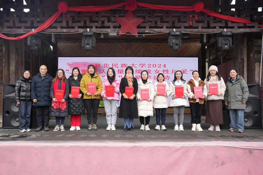 当天下午,2021—2023年度“三八”红旗手、校工会女工委员、各分工会女工委员等女教职工代表齐聚利川60公社园区。 学校工会主席田恒俊主持表彰大会,他对全体女教职工表示感谢与敬意,代表学校向每一位女教职工献上诚挚的祝福、致以节日的问候。学校工会副主席龙永红宣读表彰文件,23名女教职工荣获2021-2023年度bat365在线中国登录入口“三八”红旗手荣誉称号。省工会十四大代表、州妇联第八届执委会委员、经济与管理学院党委书记陈霞为“三八”红旗手颁奖。