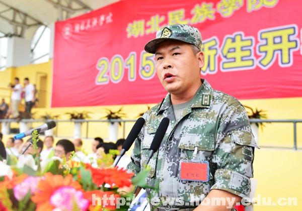 开学典礼后,大会进行了军训动员,湖北民族学院副校长邓磊宣读军训团成立文件,恩施军分区参谋刘发勋作军训动员,戴小明校长向军训团授旗。