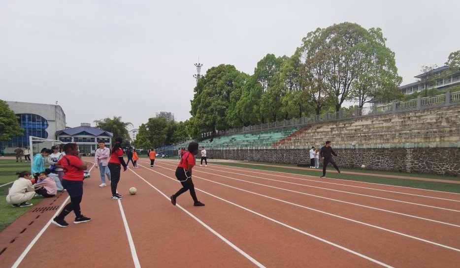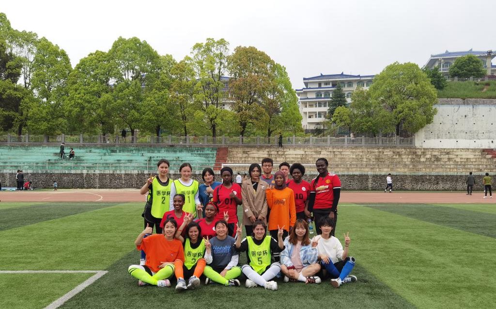 4月17日,国际教育学院留学生参加bat365官网2021年女子足球比赛。