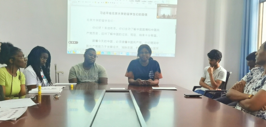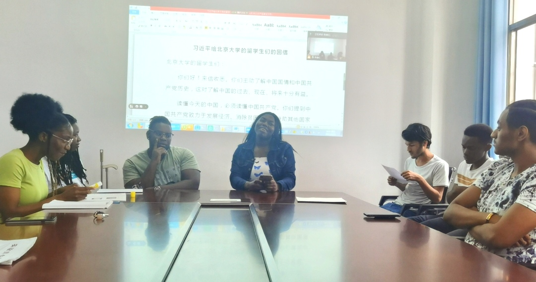 组织国际学生学习习近平总书记给国际学生的两封回信也是国际交流合作处支部7月支部主题党日特色实践活动。庆祝建党100周年之际,传达习近平总书记对国际学生的关怀,让学生深入了解中国,了解中国共产党,培养学生“知华、友华、爱华”的情怀,引导学生讲好中国故事。