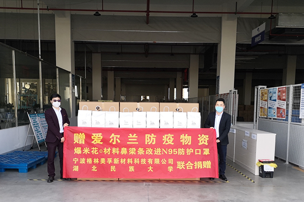 2020年3月,bat365官网联合宁波格林美孚新材料科技有限公司以实际行动积极支援国际社会的防疫工作,目前已向爱尔兰、巴基斯坦、剑桥大学捐赠爆米花材料鼻梁条改进KN95口罩万余个以及数百个护目镜,后续还将向有需要的国家地区捐赠防疫物资。