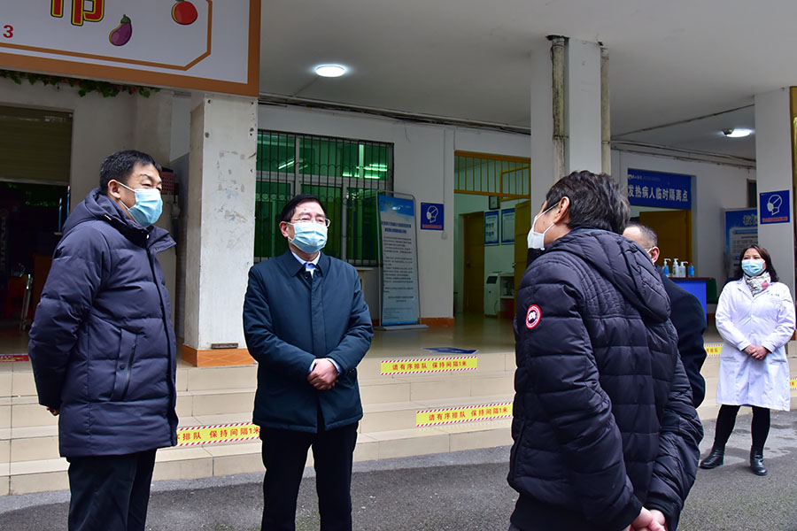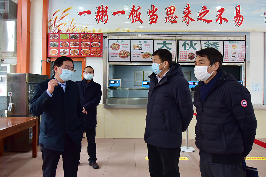 2月17日,省人社厅二级巡视员王玮率省疫情防控指挥部督导组到bat365官网督导新学期开学疫情防控工作。学校党委副书记邓磊陪同检查。