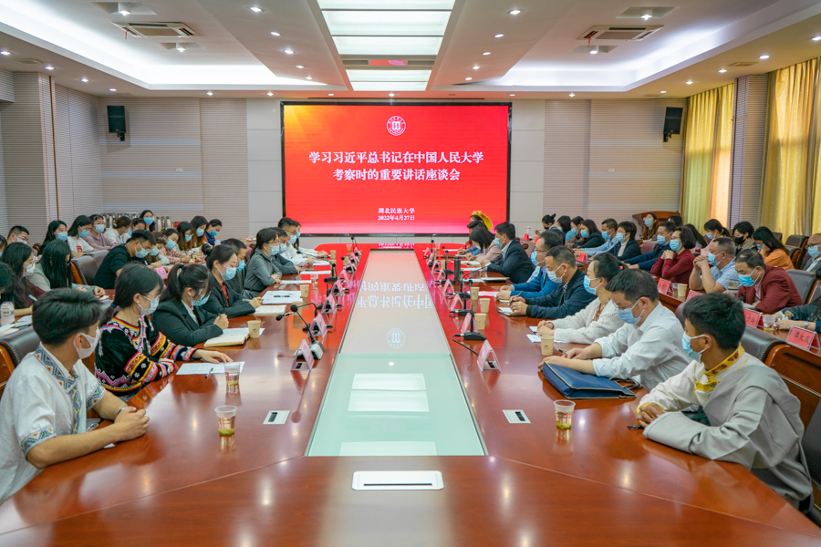 党委宣传部副部长万力表示,学校在党的民族政策光辉照耀下发展,全体民大人致力于为少数民族和民族地区服务、为国家战略服务。下一步,学校将组织全校师生深入学习习近平总书记在中国人民大学考察时的重要讲话精神,把总书记的深情嘱托化作前行的动力。要以“博学博爱、立人达人”的校训为指引,回答好“为谁培养人、培养什么人、怎样培养人”这个根本问题。要始终秉承“为党育人、为国育才”的初心使命,始终坚持以“铸牢中华民族共同体意识”为主线,扎根中国大地,扎根武陵山民族地区,培养高水平应用型人才。
