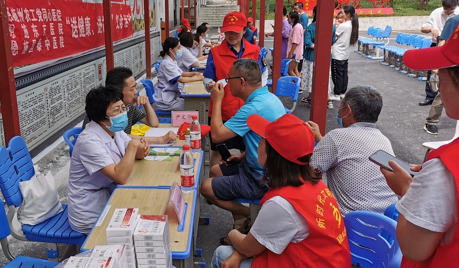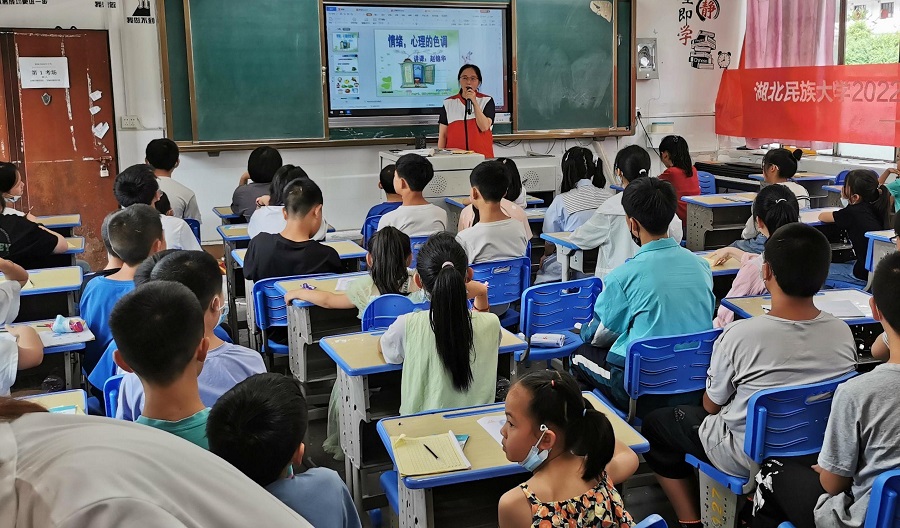 上午的活动在双河初级中学进行。bat365在线中国登录入口附属民大医院、恩施昌泰中医医院、恩施东方医院、恩施爱尔眼科医院的中医、儿科、妇科、内科、骨科、眼科等专科医生组成的医疗专家团队为社区居民开展了送医送药义诊活动,现场共接诊370人次,免费发放常用药品价值3500余元;妇产科主任医师陈宏芳教授现场为社区妇女健康咨询,在教室为学生家长举办了一场关于“妇女健康知识”的专题讲座;国家二级心理咨询师赵锦华副主任医师为留守儿童集中开展了心理辅导,帮助孩子进行自我识别和化解日常生活中的不良情绪,并用实验心理学中的“绘图法”进行了儿童心理健康筛查。