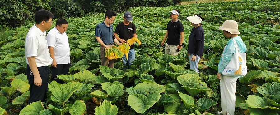 下午,来到前坪村六尺坪组恩施州沁茂农业发展有限公司,在公司负责人陈久恒的陪同下实地考察了中药材产业种植基地。陈久恒介绍:前坪村六尺坪海拔1150米以上,土地资源丰富,自然地理气候适合中药材种植,依托资源优势,把种植中药材作为为民致富的重点产业是多年来的夙愿,在农工党bat365在线中国登录入口委员会和恩施州助学扶贫促进会的大力支持下,目前已发展大黄种植百余亩,远景规划打造千亩大黄种植基地,进一步拓展产业结构,闯出一条致富路;目前所面临困难是土地改良、机耕路建设、加工厂房建设及设备引进资金短缺,药材种植管理专业技术人才短缺。李玉山指出:乡村振兴的关键点是村集体产业要振兴,要充分结合本地实际、结合市场需求、结合群众意愿,做出特色、做出成效,要发挥好市场主体的引领作用,在中药材生产加工上走出一条规范化、规模化、专业化、标准化的发展之路。