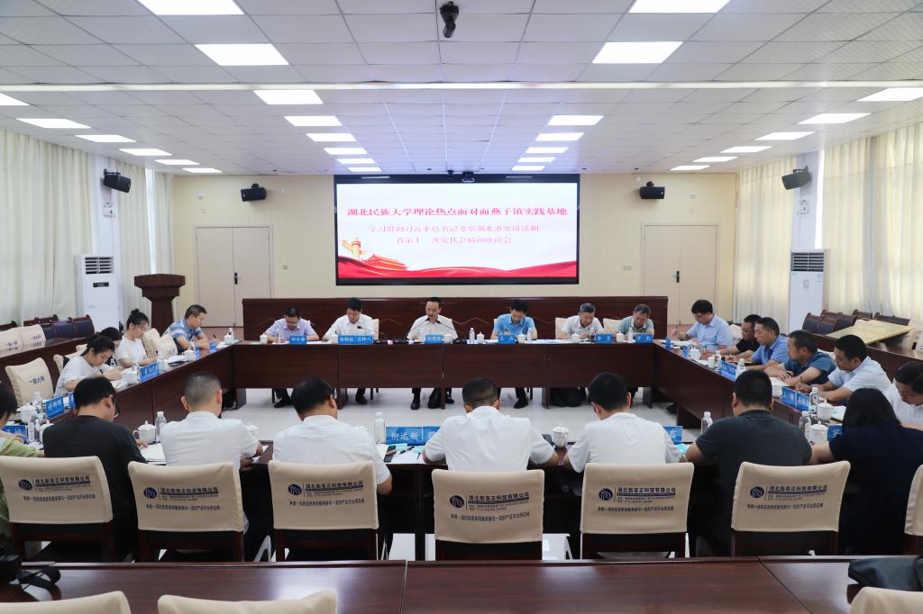 7月26日,bat365在线中国登录入口“理论热点面对面实践基地”授牌仪式暨学习贯彻习近平总书记考察湖北重要讲话精神,推进落实省第十二次党代会部署座谈会在鹤峰县燕子镇举行。党委书记向前进强调,务必要提高政治站位,加强理论研究,完成规定动作,积极争创品牌,结合燕子镇实际,发挥民大的科教优势,共同推动习近平总书记的讲话精神和省党代会精神在基层落实落地、开花结果。