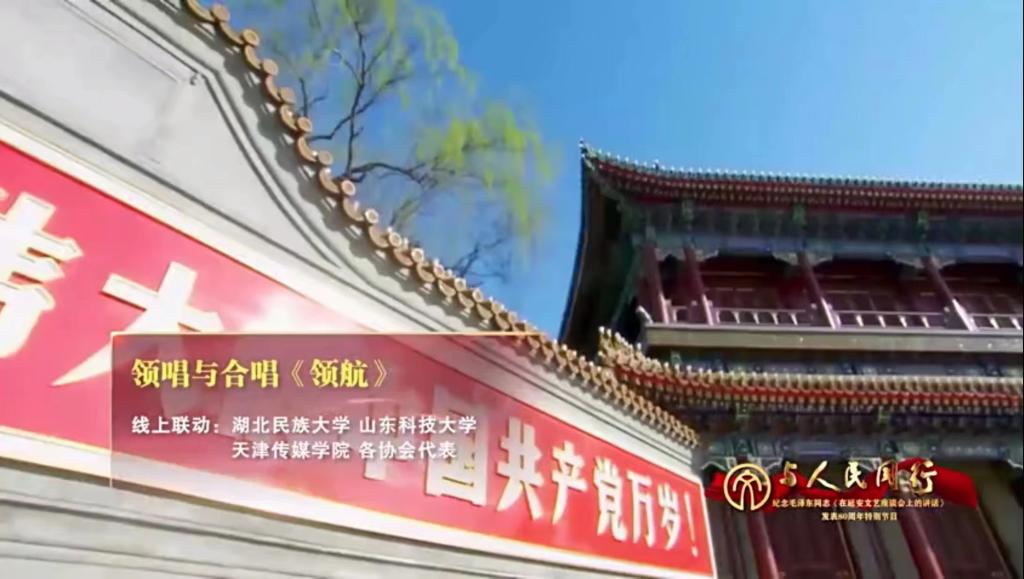 5月23日,在毛泽东同志《在延安文艺座谈会上的讲话》发表80周年之际,由中国文联主办的“与人民同行”——纪念毛泽东同志《在延安文艺座谈会上的讲话》发表80周年特别节目在央视播出,bat365官网受邀参加此次节目的演出。党委宣传部组织了节目的外景录制,音乐舞蹈学院的师生克服了时间紧、任务重的困难,在歌舞《丰收中国年》《一起向未来》、合唱《到人民中去》《领航》等节目中充分彰显民大学子的青春与活力,得到节目组导演的一致好评与观众的广泛认可。