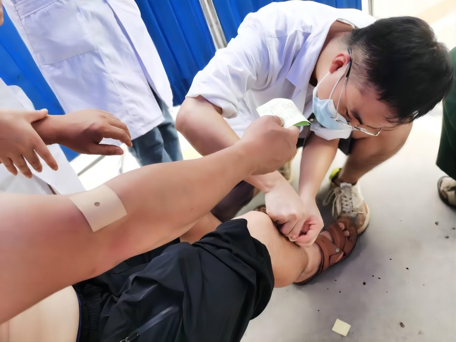 民大实习生展现出的不辞辛苦、敢于担当、艰苦奋斗的精神令襄阳中医医院的领导和职工印象深刻。在接受采访时,崔暖说:“我们始终铭记‘艰苦奋斗、甘于奉献、自强不息、追求卓越’的民大精神并将其付诸于实践。作为医学生,在人民健康事业中奉献自己的力量,是一件无比光荣的事情,所以我们能不辞酷暑地完成贴敷任务。”医学生用无限的热情与激情、用实际行动践行“人民至上、生命至上”的理念。