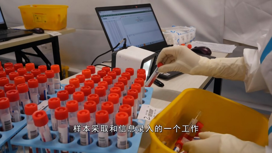 崔暖告诉记者:“我们被集中安排在前处理区,主要负责信息提取工作。每当接到指挥部下发的任务,大家就第一时间到达实验室,穿戴好防护服,进入仓内投入紧张的工作。核酸检测的工作十分复杂,我们要先将核酸标本和试管架转至仓内,并打印版号和流转单,随后在电脑上录入每一支核酸样本的信息,再将样本传送至其他实验区,进行下一步处理。在录入信息的过程中,还得仔细甄别一些有特殊情况的样本,如空瓶、标签污损、标签重复等,这些特殊样本就要将其挑选出后进行特殊处理,以防对后续其他实验区的工作造成干扰。”繁琐的程序、重复的作业、庞大的数量,同学么各司其职,最大程度保证了高效率与零出错率。