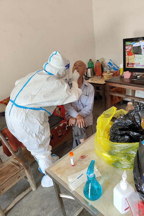 民大志愿者跋涉到居住偏远的居民家中采样
