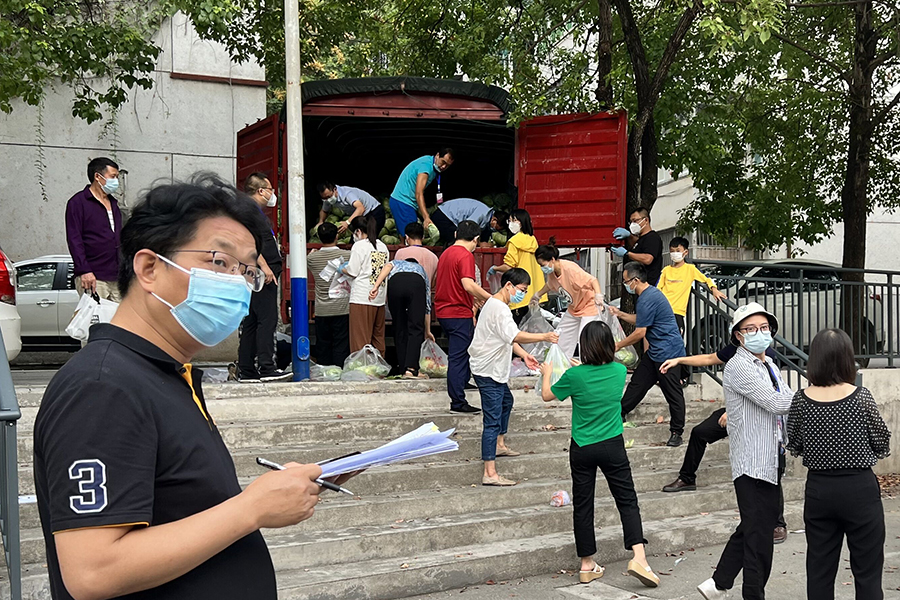 志愿者有序分装蔬菜