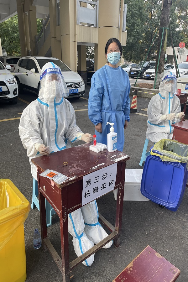 当清晨的第一缕阳光升起,她开始了一天的忙碌。上午,官霞在核酸检测点辅助医护人员的工作;下午,她主要负责帮居民购买药品、日常生活物资的工作。