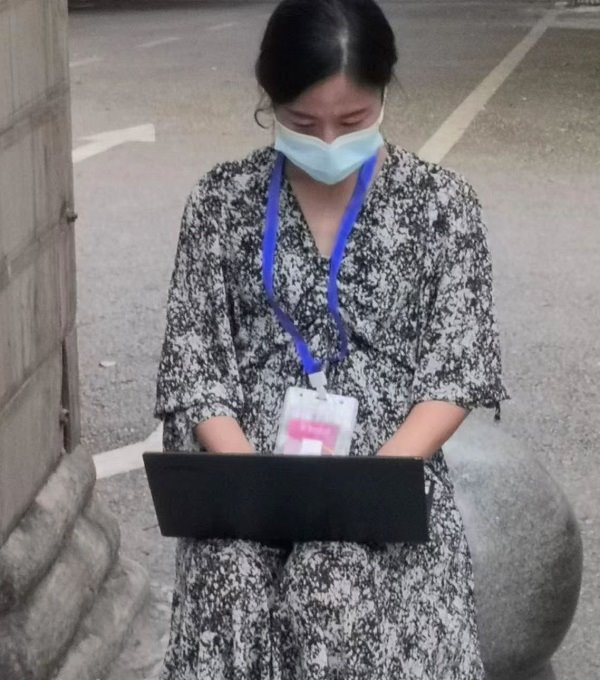 身为教师,罗颖还担负着授业解惑的任务。她在任务相冲突的时候没有推辞,而是克服困难,承担起自己不同身份下的责任。为了不耽搁学生课程,罗颖最后决定带着课本和电脑,在值勤点以腿为桌给学生上网课。桃李不言,下自成蹊。作为老师,她教书育人,给知识插上翅膀,送到屏幕另一端;身为党员,她化身抗击疫情的战士,“疫”无反顾。