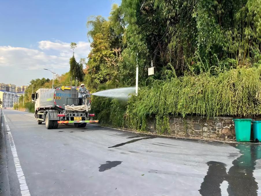 环卫员工在浇水