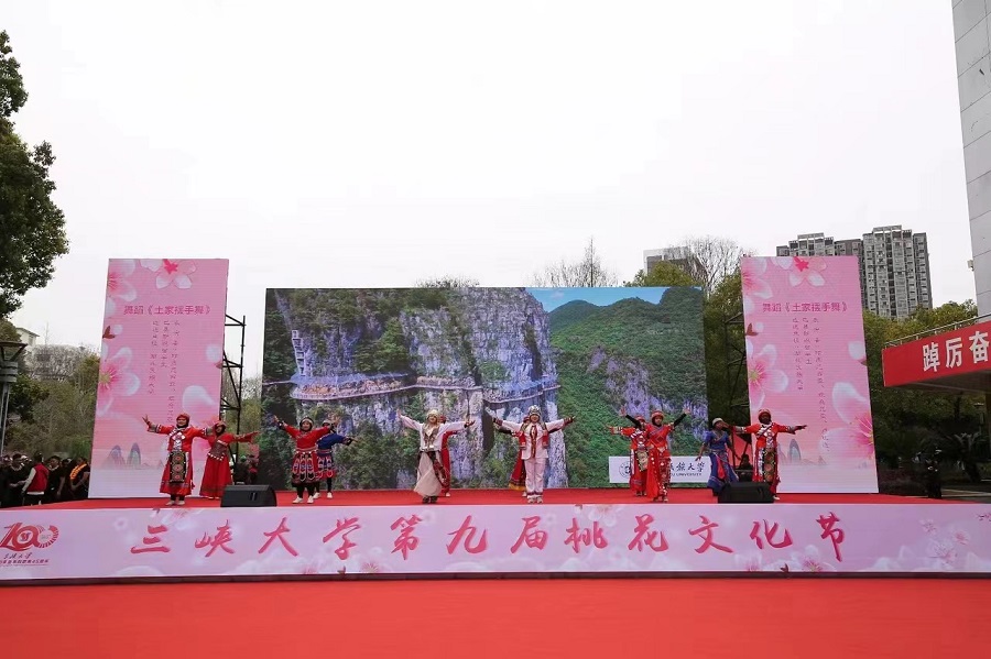3月25日,学校国际教育学院留学生受邀赴宜昌市参加三峡大学第九届“桃花文化节”,与三峡大学及湖北省其他高校70余名留学生代表展开现场交流,并在开幕式上表演了精彩的土家摆手舞。