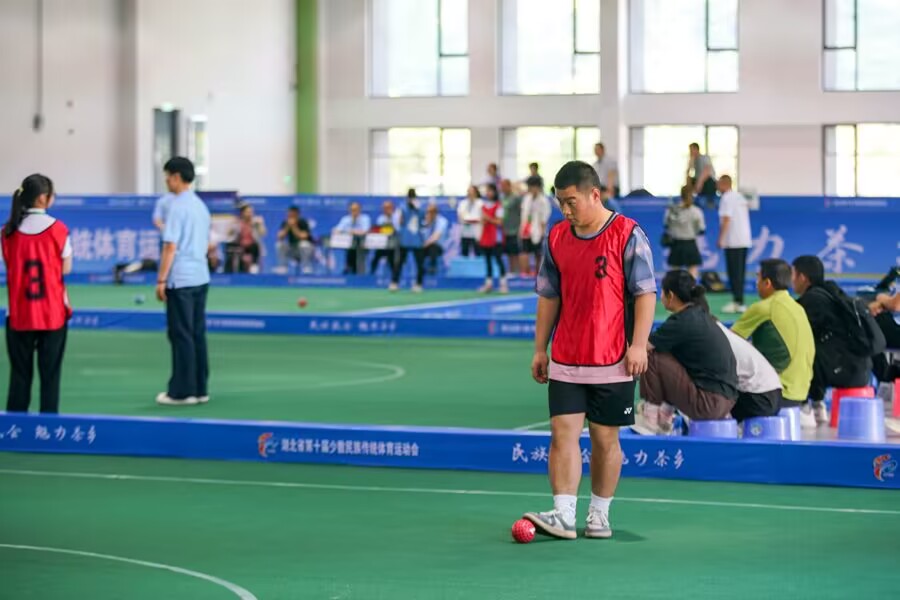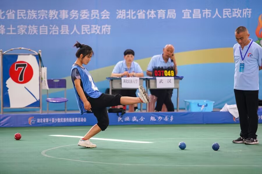bat365在线中国登录入口代表团的运动健儿进行蹴球比赛