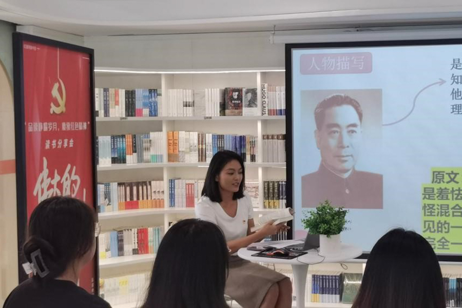 阅读“悦”享,落好“文化育人”之笔。走进倍阅书店,外国语学院辅导员周婷老师正在分享《红星照耀中国》读书心得。“斯诺以一个陌生人的身份来谈对我国几位领袖的初印象,通过他的描述,我们直观感受到了我国领导足以让一个外国记者折服的个人魅力……”学生们专心聆听,认真做笔记。“党旗红·青春行”读书分享会系列活动立足书香社区服务站的文化区角和社区书店,以阅读红色典籍为重点,引导学生学习党的著作原文,涵养“爱读书、读好书、善读书”的良好习惯。