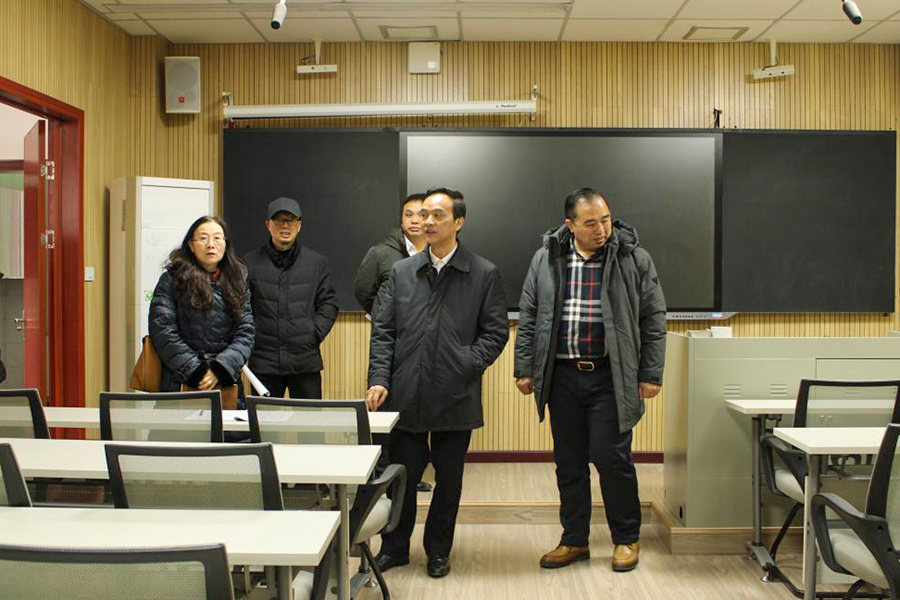 向前进(右二)一行查看教学环境