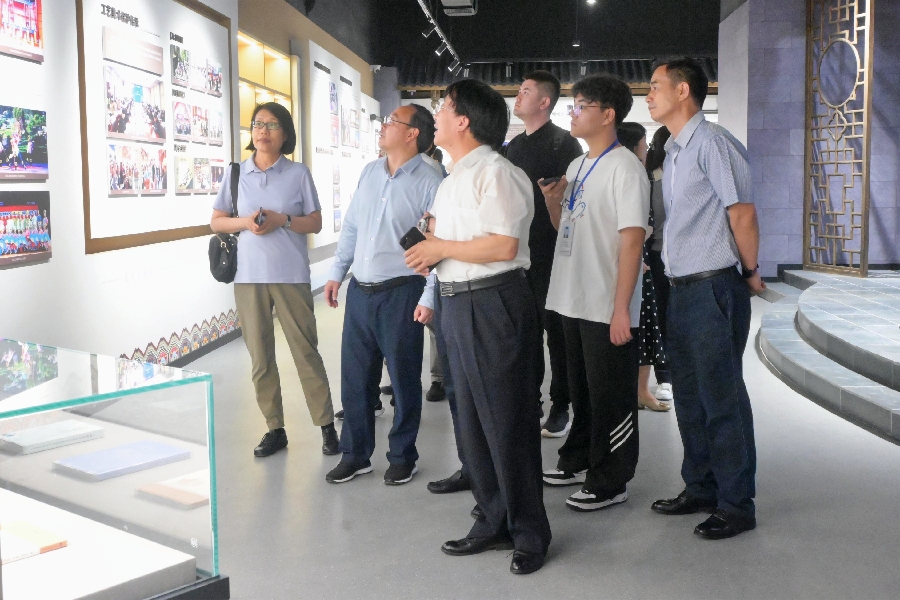 张凤宝(右二)参观学校展览中心