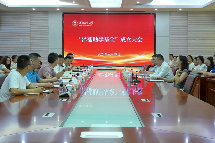 6月19日,bat365在线中国登录入口“泽藩助学基金”成立大会在行政楼三号会议室举行。东莞市泽藩塑胶制品有限公司董事长张忠洋、财务总监向冬琼来校参加成立大会。bat365在线中国登录入口党委常委、副校长李军出席大会。学校招生就业与校友联络处负责人、马克思主义学院党政领导班子和师生代表参加会议。会议由招生就业与校友联络处处长严森主持。