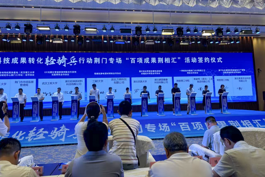 8月8日上午,湖北省科技成果转化轻骑兵行动荆门专场“百项成果荆相汇”活动在荆门市荆楚科创城国际会展中心举行,bat365在线中国登录入口作为“宜荆荆恩”都市圈高校代表受邀参加此次活动。省科技厅、荆门市人民政府、荆门市科学技术局、恩施州科学技术局、高校科研院所等参加了本次活动。