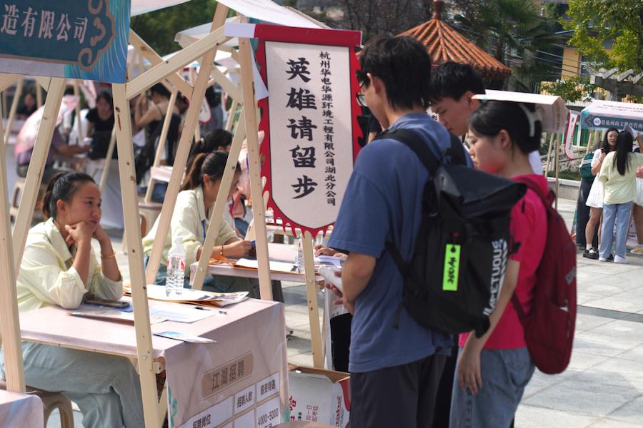 各招聘单位通过面对面交流、发放宣传册的方式向学生详细介绍本企业的招聘岗位、薪资待遇、人员需求等情况。应届毕业生积极主动与招聘单位工作人员开展深度交流与咨询,选择有潜力和前景的职业方向,努力争取就业机会。“不少企业的用人需求和我所学专业相适,而且武汉充满人情味的城市氛围也让我将这里视作择业就业的理想之地。”2025届林学园艺学院园林专业陈思怡说。她今天带了十几份简历过来。