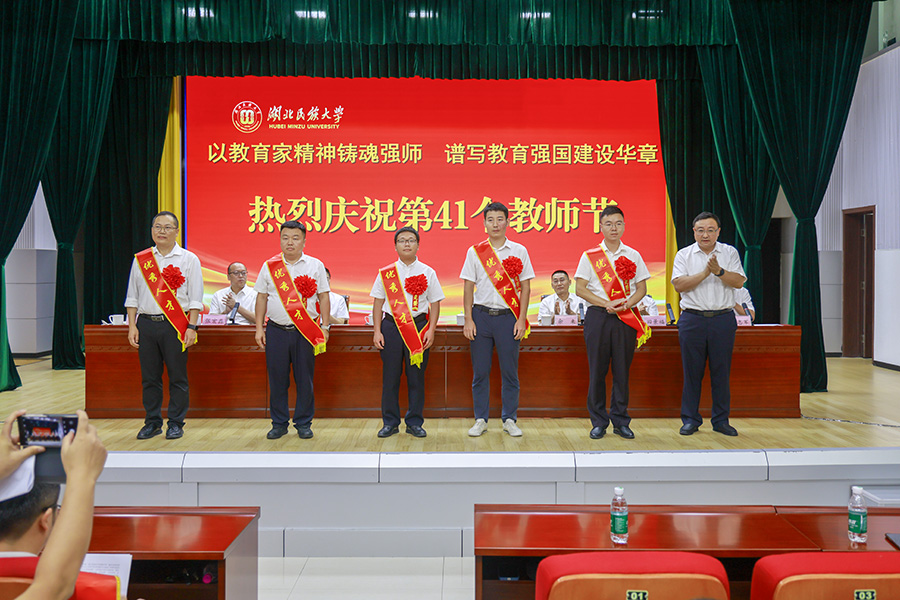学校党委书记戴清堂出席大会并发表讲话,向辛勤耕耘在教学、科研、管理服务一线的全体教职员工致以节日的诚挚问候和崇高敬意,并寄语全校教师,特别是青年教师要争做立德树人的“大先生”,勇做科研创新的“攀登者”,善做改革发展的“实干家”。他结合自身多年工作经验和心得,分享了以“信、制、议、决、计、攻、新、同、专、则、和”为核心的“十一字真言”,为教师实现“站得高、看得远、走得稳、跑得快、干得好”的职业发展目标提供具体指引。戴清堂还为2024年“全国模范教师”骆贤凤,2024年国务院“政府特殊津贴专家”魏代俊,2023年“楚天英才计划·楚天学者”孟详喻、谭健峰,2024年“博士后海外引才专项”蒋欣等五位入选国家级、省部级人才工程教师佩戴绶带。