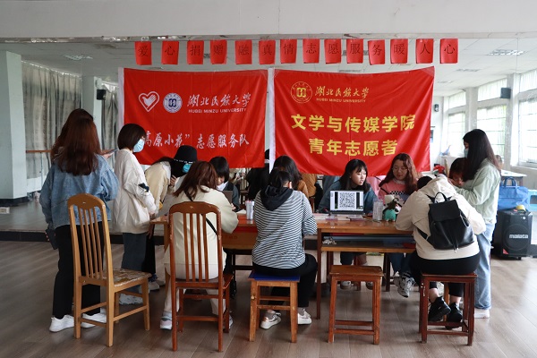 本网讯(记者 周思琦 通讯员 宋小冬/文 记者 张倩雯/图)4月24日,文学与传媒学院团总支委员会社会实践与志愿者工作部联合高原小花志愿服务队在体育学院9A109教室举办“爱心捐赠融真情 志愿服务暖人心”活动,全校学生积极参与。