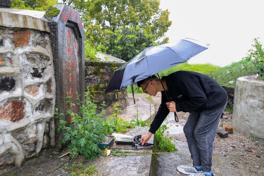 随后,学生分组擦拭烈士墓碑和打扫陵园卫生,整个环节庄严肃穆、井然有序。