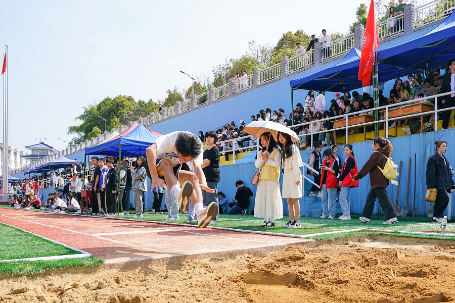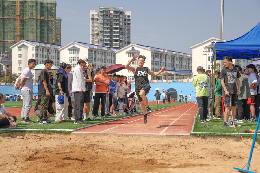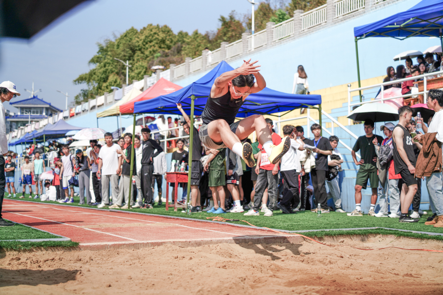 美丽的弧线,轻捷的身影,青春的风采。4月10日下午,男子三级跳远在五环田径场举行。运动员沉着冷静,目视前方,助跑、起跳、奋力一跃,展现青年奋勇之姿,释放青春的光彩!