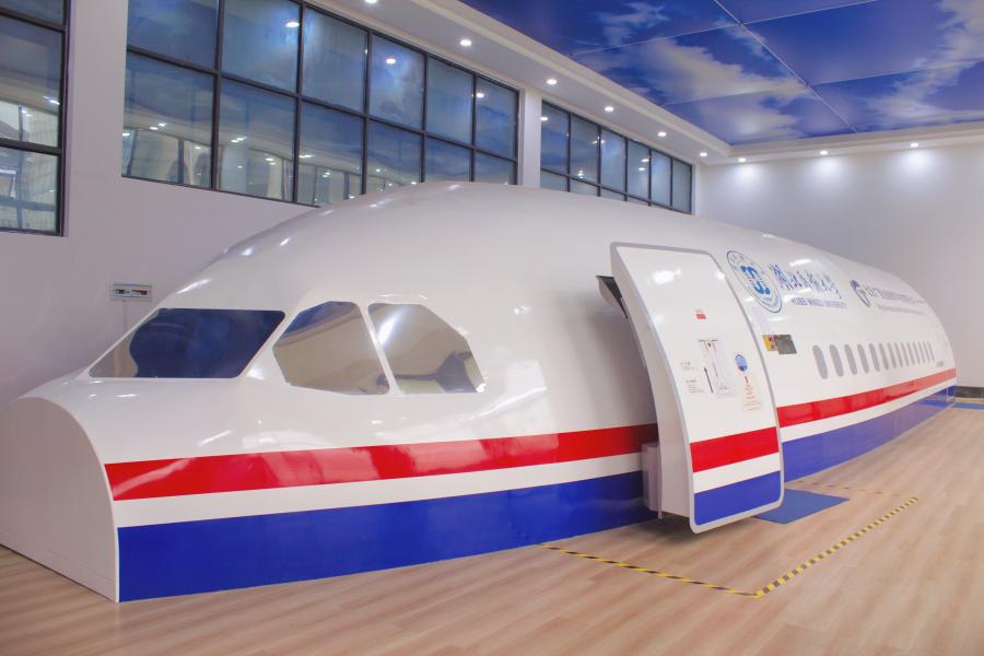 模拟巡航环节。空乘人员为旅客提供餐饮服务。“您好女士,我们这里有咖啡、可乐和雪碧,请问您需要喝哪一种呢?”“您好先生,请问您需要毛毯吗?”空乘人员细心关注旅客需求,细致讲解下降前注意事项。随后,空乘人员演示应对舱内失火等突发安全状况。最后,空乘人员进行着陆前准备与例行检查,飞机安全着陆巴黎戴高乐机场。