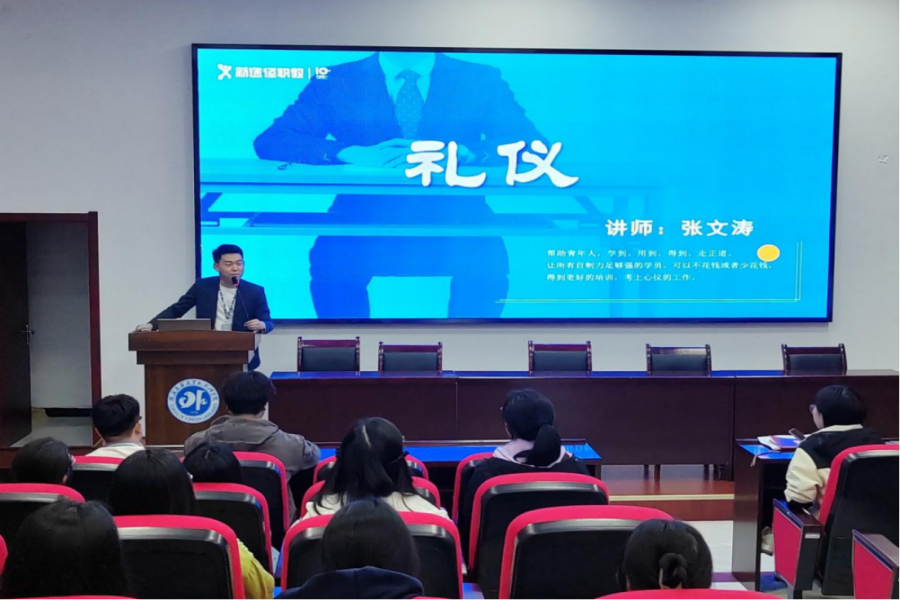 礼仪即尊重,新时代大学生应当要明礼仪之道,行礼仪之举,展现出行有礼、仪有德的精神风貌。3月24日,走进外国语学院报告厅,一场关于“品德”与“礼仪”的讲座正在进行。主讲人从校园礼仪、社会活动礼仪、求职礼仪三个方面,引导学生修礼于心、养仪于行,专业的讲解和示范让在场的学生沉浸其中,现场气氛十分热烈。