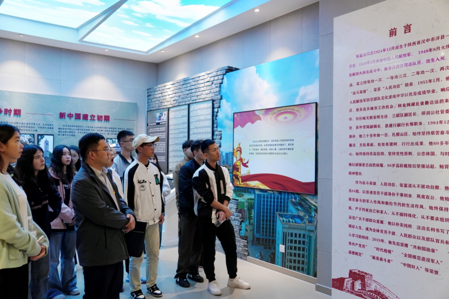 师生们一边认真观看馆内陈列品,一边聆听讲解员介绍张富清老英雄平凡而又伟大的一生。参观结束后,同学们在结合自身学习和未来发展积极发言,纷纷表示要向张富清老英雄学习,为国家富强和民族复兴奉献自己的青春和才华。