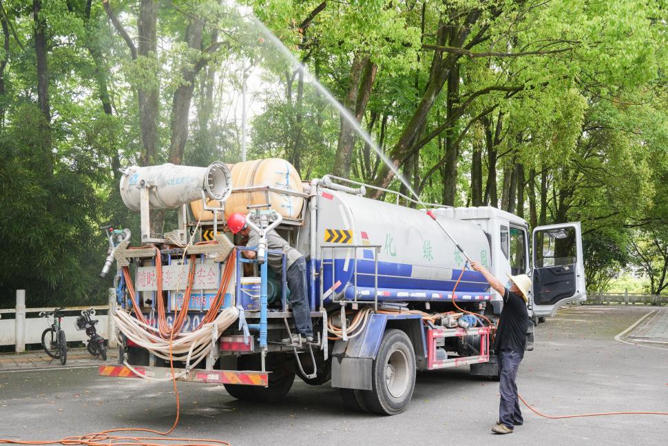 工作人员喷洒药物