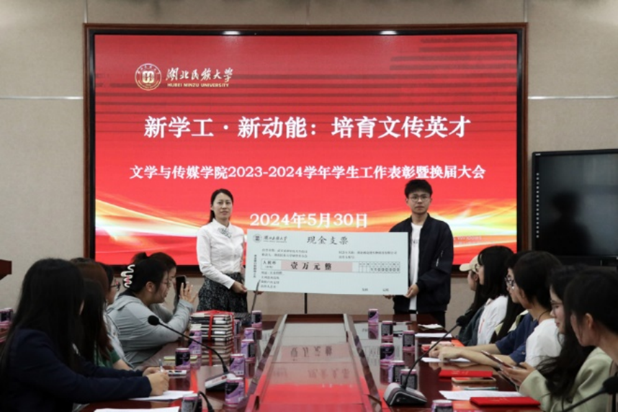 5月30日,文学与传媒学院在智慧教室一举行“新学工·新动能”启动仪式,总结、表彰2023至2024学年度学生工作,规划、展望未来一年学院学生工作新方向。