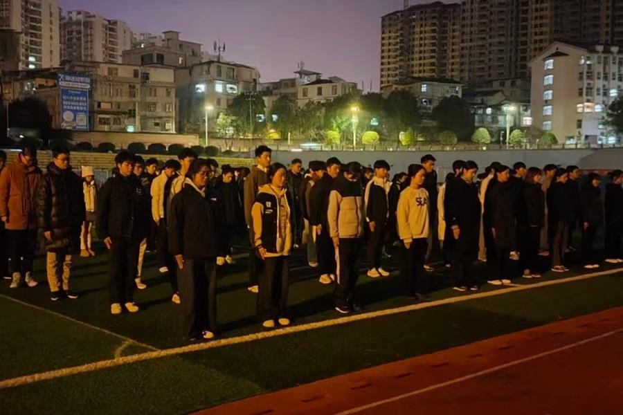 国旗护卫队在大学生广场举办“烛光祭”活动,以烛光寄哀思,为南京大屠杀遇难同胞祈福。学生领取蜡烛并点燃烛光后写下缅怀或祝福的便签,随后进行一分钟默哀仪式。同时,现场蜡烛摆放成手掌和“1937.12.13”的字样,青年学生手捧白蜡,为30余万遇难同胞点亮烛光,告慰逝者。烛光摇曳,照亮了黑夜,也映照出学生心中那份对和平的祈愿,并时刻提醒着学生永远不要忘却那段伤痛的历史。
