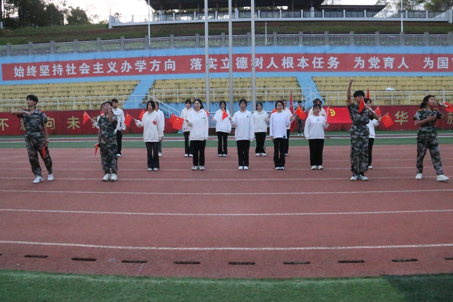 活动在庄严的国歌声中拉开序幕,全体师生面向国旗,齐唱国歌,行注目礼。团旗出,学生面向团旗,齐唱团歌,重温入团誓词。