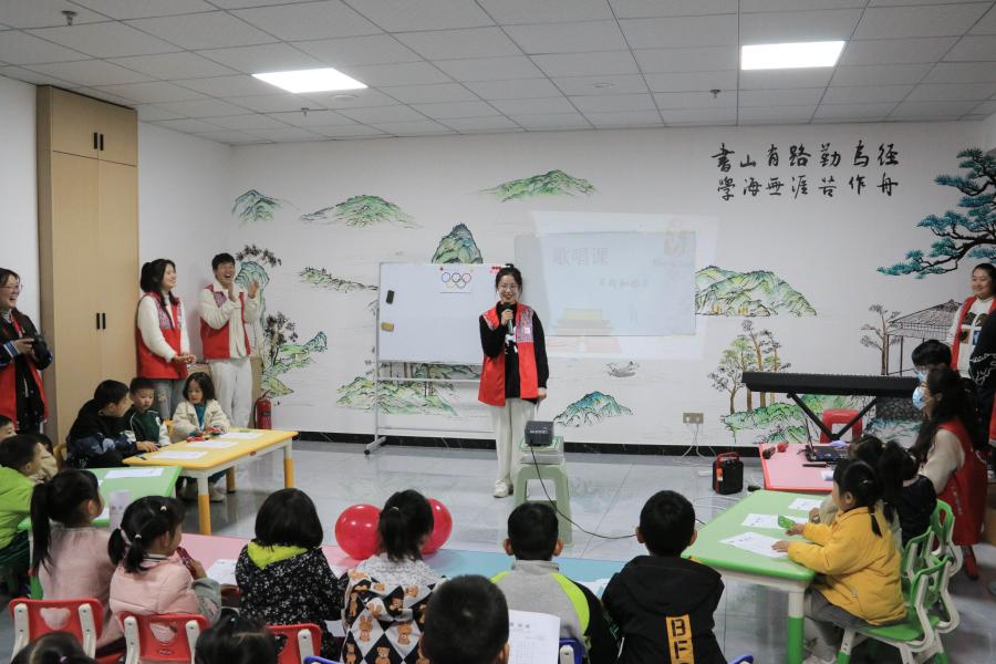 志愿者带领小朋友唱歌